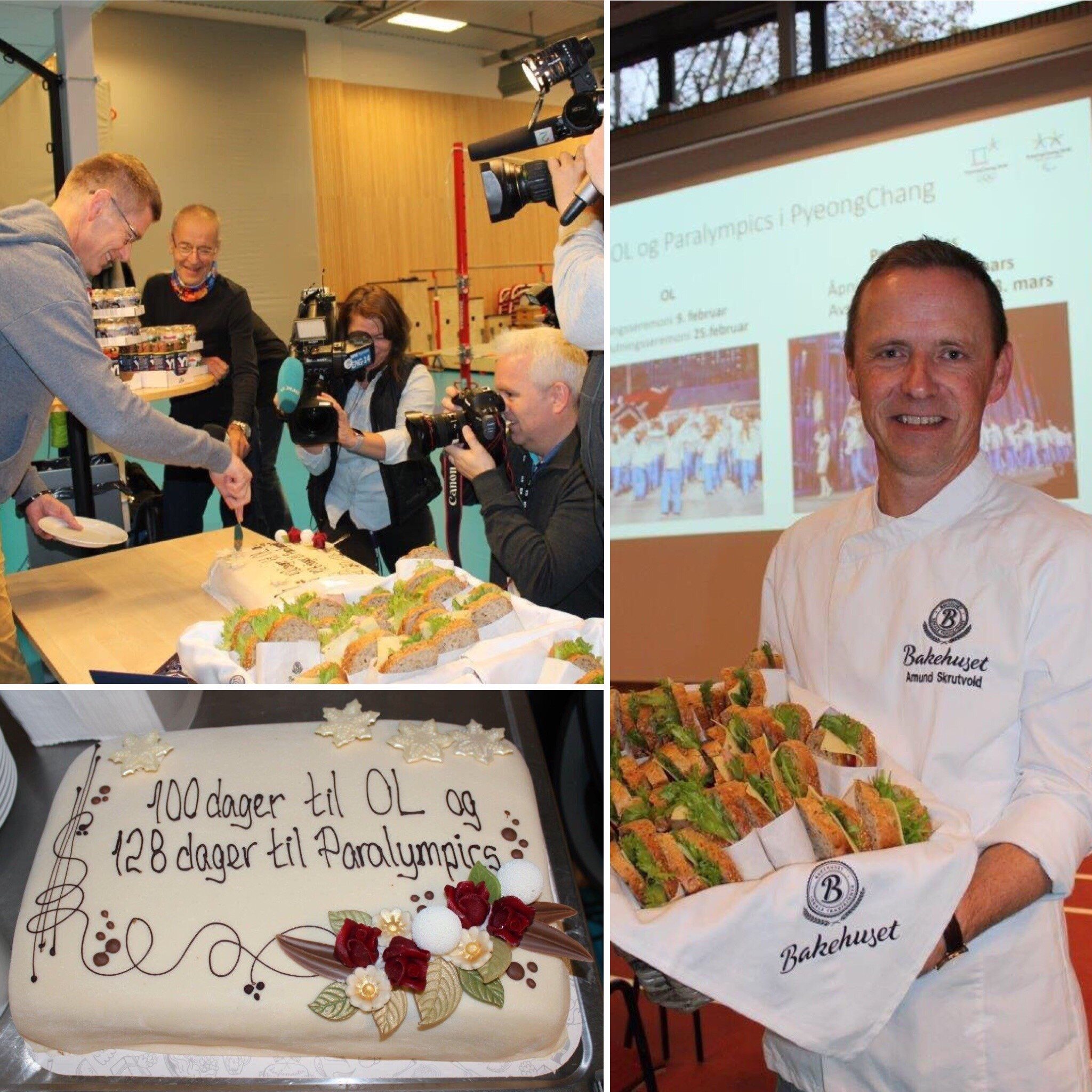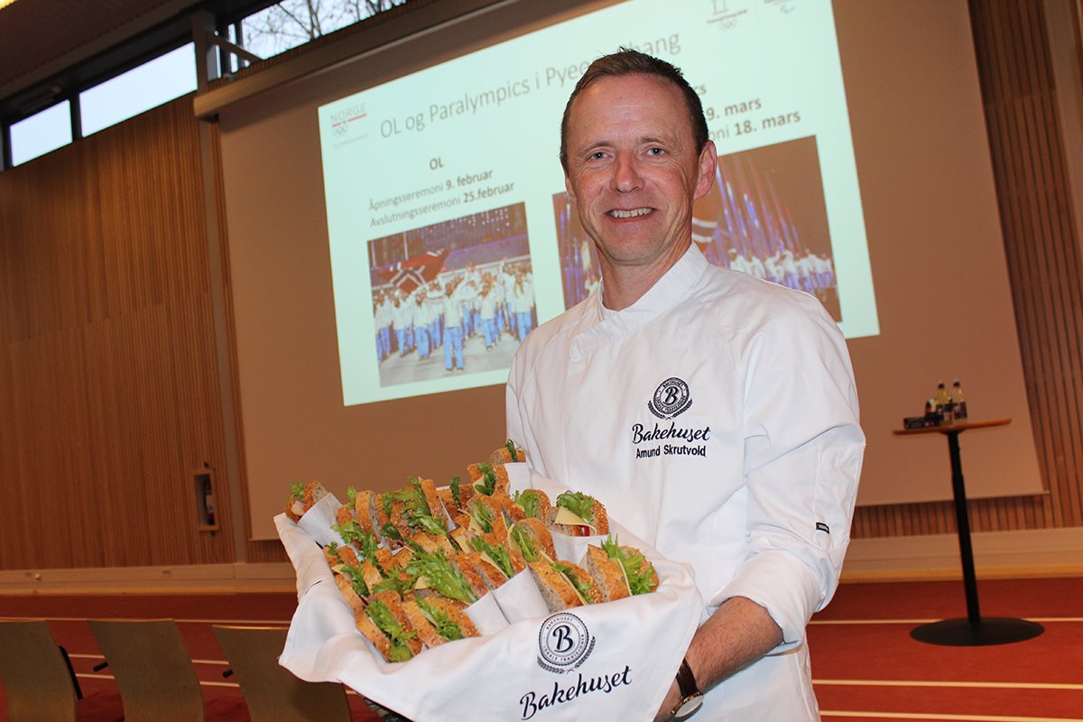 100 dager til OL i PyeongChang! Bakermester Amund Skrutvold var til stede med ferske Naturlig Sunt-skiver og kake på dagens pressekonferanse hos Olympiatoppen. Bakehuset har status som leverandør under Vinter-OL i PyeongChang i 2018, og Amund inngår i støtteapparatet. Toppidrettssjef Tore Øvrebø satser på at Norge tar kaka i OL – målet er 30 medaljer under lekene.