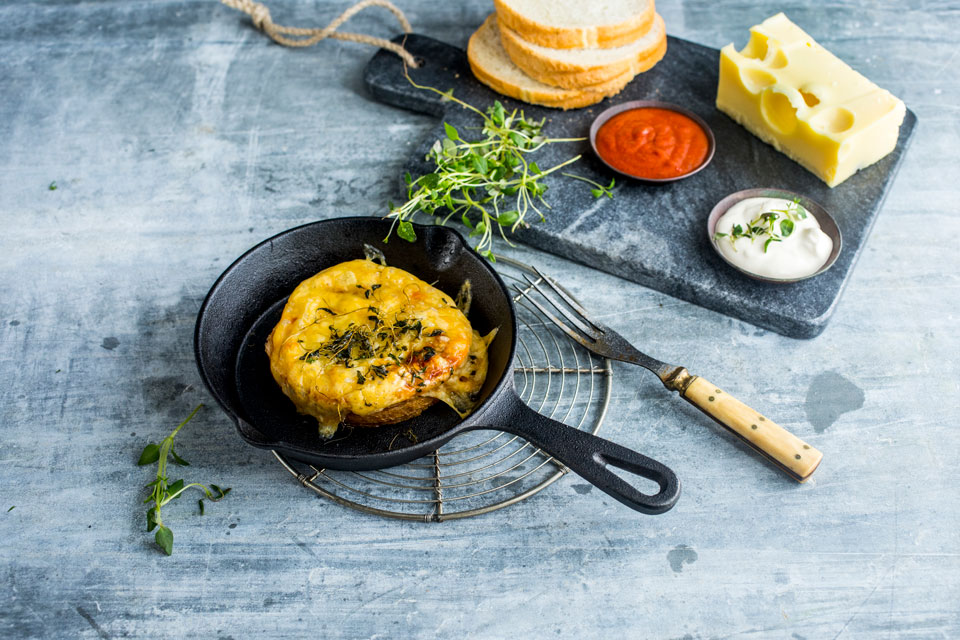 - Del rundstykket i to og fyll med kjøttboller og tomatsaus, og topp gjerne med ruccula. Enkelt, godt og mettende.