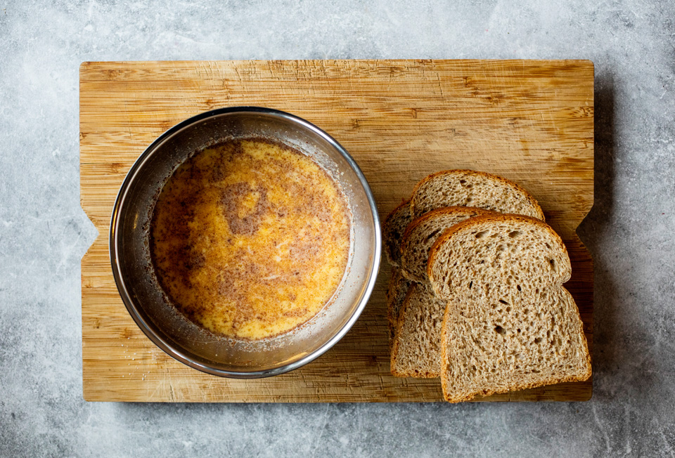 - Visp sammen egg, melk, sukker, kanel og kardemomme.
