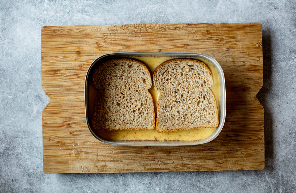 - Hell blandingen i en form. La brødskivene trekke på begge sider.