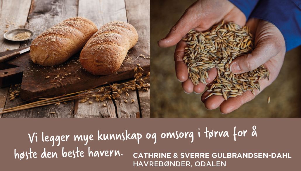 I Odalen har de lange tradisjoner for å dyrke havre av høy kvalitet, og det er her vi har funnet smaken til vårt Havrebrød. Cathrine og Sverre Gulbrandsen-Dahl driver Søndre Disen gård, og er to av de bøndene i Odalen som dyrker den havren vi benytter. Kornet gir en mild nøtteaktig smak i brødet, er rikt på fiber og har en gunstig fettsammensetning.